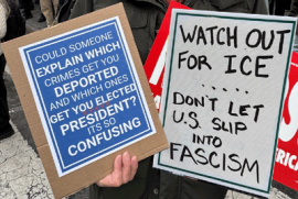 Вместо этого Трамп превратил работу ICE в какое-то немыслимое и страшное шоу. «Айсовцы» сменили имидж на бандитский и начали хватать на улицах, возле школ и магазинов первых попавшихся под руку латинос, включая беременных женщин, маленьких детей и стариков, выволакивать из домов полураздетых перепуганных людей разного возраста. В депортационных центрах оказались как обладатели грин-карт, так и граждане США.
