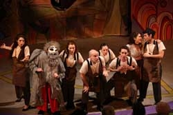 И как чудесно и расковано играют, поют, танцуют и молодые, и опытные актёры. Запомните имена Стивена Мо Ханана (царь) и Стэйси Харрис (Эстер). Но ещё непременно Эндрю Кельца - его персонаж в древнем свитке не значится, потому что, подобно укоренившемуся обычаю добавлять к пуримскому представлению всякое-разное, автор неожиданно ввёл в пьесу драматическую фигуру соответственно одетого местечкового портного - парня, который непостижимым образом любил бедную девушку Эстер, жившую за три века до нашей эры, и продолжал любить и добиваться её, когда стала она царицей. За что и был убит.