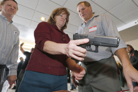 Местный учитель, одетый в костюм и галстук, спросил оружейного пропагандиста, почему спецназовцы (SWAT), приезжающие в школы во время стрельбы, одеты в каски, бронежилеты и другое защитное обмундирование. Оратор тут же начал говорить, что "эти доблестные парни рискуют своей жизнью и должны быть максимально защищены, чтобы вернуться к детям и жёнам живыми". За этим последовал следующий вопрос: почему же учителя должны бежать на выстрелы в самой обыкновенной и очень неудобной для маневрирования одежде? Пропагандист сразу замялся.