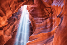 В городке Пейдж (Page) на землях, принадлежащих индейцам навахо, находится уникальный природный объект Antelope Canyon. Это место завораживает всех, кто сюда попадает. Это очень узкий и извилистый каньон в красном песчанике, который дождь и вода "вытачивали" тысячелетиями. Когда вы идёте по тропинке между психоделических скал, переливающихся на солнце, возникает ощущение чего-то нереального и неземного. Эта одна сплошная декорация для фильмов о других планетах.