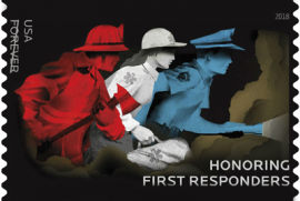 Почтовая служба США (USPS) представила новую марку Honor First Responders, которая увековечивает представителей самых важных и опасных профессий - пожарных, полицейских/агентов спецслужб и работников скорой медицинской помощи. На марке три человека красного, белого и синего цвета (цвета американского флага) спешат на помощь пострадавшим.