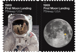 В день выхода этого номера "РБ" и за сутки до 50-летнего юбилея высадки на Луну первого человека Почтовая служба США (USPS) и Национальное управление по аэронавтике и исследованию космического пространства (NASA) выпустят две памятных марки под названием 1969 First Moon Landing.