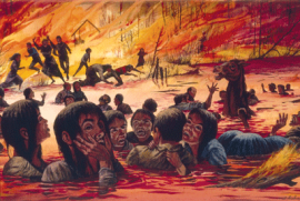 "Воздух горел, - вспоминал местный священник, которому удалось выжить. - Мы стояли в реке по горло и с силой били по воде руками, пытаясь снизить температуру воздуха вокруг голов".