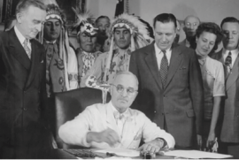 Репарации индейцам. В 1946 году Конгресс США создал Комиссию по претензиям с стороны индейцев (Indian Claims Commission), которая начала собирать факты дискриминационного отношения к коренным жителям. Большинство жаловались на отнятые территории и нехватку денег в племенах.