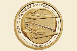 11-й доллар в рамках популярной программы Монетного двора (US Mint) "Американские инновации" (American Innovation Dollars) увековечит одну из самых сложных инженерных конструкций в нашей стране - Мост-тоннель через Чесапикский залив (Chesapeake Bay Bridge-Tunnel - CBBT). Он соединяет континентальную Вирджинию с полуостровом Делмарва.