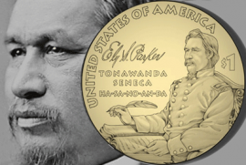 На традиционной ежегодной монете в честь коренных народов США впервые появится Эли Паркер (Ely S. Parker, 1828-1895) - легендарный армейский офицер, инженер, дипломат по переговорам с коренными племенами и личный военный секретарь 18-го президента США (1869-1877) Улисса Гранта в годы Гражданской войны (1861-1865). Об этом объявили кураторы монетной серии Native American $1 Coin.