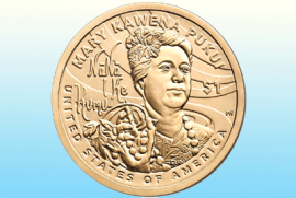 Монетный двор США (US Mint) выпустил однодолларовую монету в честь Мэри Кавена Пукуи (Mary Kawena Pukui, 1895-1986) - жительницы Гавайских островов и представительницы древнейшего племени индейцев. Монету можно приобрести в официальном интернет-магазине ведомства в виде бумажных рулонов (25 штук) и мешков (100 штук).