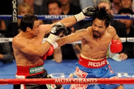В Лас-Вегасе на кону стоял принадлежащий Пакьяо пояс чемпиона мира в весе до 66,7 килограмма. При этом боксеры договорились, что вес каждого из них не должен превышать 65,3 килограмма. Пакьяо и Маркес должны были сойтись на ринге друг с другом в третий раз. В 2004 году их поединок завершился вничью. В первом раунде Маркес трижды побывал в нокдауне, но затем имел некоторое преимущество. В 2008 году победу по очкам (раздельным решением судей) одержал Пакьяо. В третьем раунде Маркес побывал в нокдауне. Первый бой проходил в весе до 57,2 килограмма, второй - до 59 килограммов.