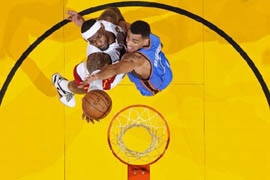 В этот раз на высоте оказались Уэйд, набравший 27 очков, и Бош, сделавший «дабл-дабл» - 16 очков плюс 15 подборов. В составе «Тандер» еще один игрок набрал более двадцати очков – атакующий защитник Джеймс Харден – 21.
