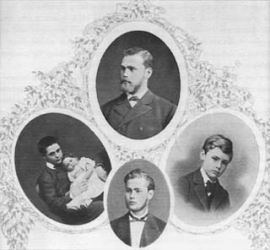 Подпись к фото: Братья Нобель, по часовой стрелке: Роберт, Альфред, Людвиг и новорожденный Эмиль. Санкт-Петребург, ок.1843 г. Фото: Wikipedia