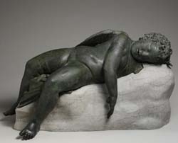 Одна из них – ценнейшая – и представлена сейчас в музейном зале, в центре которого прикорнул утомлённый трудами праведными крылатый Эрот, вечный спутник и посланец Афродиты, трогательный мальчишка, дарующий людям любовь. Единственное оружие которого – стрелы, которые он щедро рассылает обречённым влюбиться. Пластика поразительная. Вдобавок – это не копия, а оригинал III века до н.э. с острова Родос.