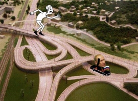 Скоро возникла еще одна аномалия. Дороги постоянно менялись. Менялась ширина и длина, полосность и направление движения. Менялись знаки. Прежние знаки скоро даже перестали снимать, их просто закрывали куском черной клеенки. Иногда ветер срывал, или прошедшая мимо корова съедала клеенку. И тогда соседствующие знаки призывали одновременно-немедленно остановиться и… удерживать скорость 90 км в час. От этого у водителей стало появляться тревожное чувство, что они заснули за рулем, что все это сон. Они стали то там, то сям останавливаться, чтобы выспаться. Чтобы не создавать аварийную ситуацию. Понятное дело, что такая ситуация - множество водителей, впавших в ступор посредине дороги, как куры при виде гриля - сама по себе была аварийной.