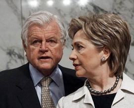 Кстати, одним из ярых сторонников Обамы (и врагом номер один для Хиллари Клинтон) был тогдашний глава клана Кеннеди – сенатор Тед Кеннеди. Именно его лоббирование, а он в то время состоял в дружеских отношениях с четой Клинтон, обеспечили Обаме поддержку либералов, а подруге Хиллари - поражение на праймериз. Такого коварства Хиллари от своего давнего друга не ожидала, и потому вместе с другим либералом из Массачусетса Джоном Керри внесла Теда в список персональных врагов.