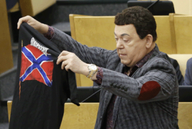Такова реакция Иосифа Давидовича на то, что 16 февраля Евросоюз расширил черный список россиян, в отношении которых действуют санкции. В него вошли пятеро россиян: заместители министра обороны России Анатолий Антонов и Аркадий Бахин, замначальника генштаба ВС РФ Андрей Картаполов, певец Иосиф Кобзон и депутат Госдумы от КПРФ Валерий Рашкин.