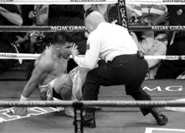 Бой, состоявшийся на ринге MGM Grand Garden Arena в Лас-Вегасе, откровенно разочаровал поклонников бокса, несмотря на то, что обычно поединкам за чемпионские пояса предшествуют скандалы. А сами поединки заканчиваются довольно предсказуемо и редко когда нокаутом. Здесь же случилось все: и скандал, и нокаут, и последовавшие за ним разборки на ринге с участием команд противоборствующих сторон.