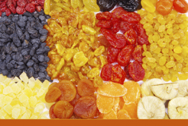 Изюм (raisins). Занимает 90% рынка американских сухофруктов. Изготавливается тремя тысячами компаний и частных ферм. Изюм очень калориен (217 калл. в 120 граммах) и при этом богат всеми основными минералами.