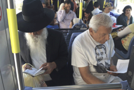 Иерусалимец Меир Ицхак ПАВЛОВСКИЙ, запечатлевший эту пару пассажиров в столичном трамвае, поймал два полюса еврейского самосознания — вечное и изувеченное.
