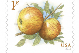 Почтовая служба США (USPS) увековечит легендарный сорт яблок Newtown Pippin, которые также известны как Albemarle Pippin. Сочные плоды, нарисованные художником-иллюстратором Джоном Бэргайном (перо, тушь, акварель), появятся на одноцентовых марках. Эти вспомогательные почтовые знаки, напомним, доклеиваются на конверты, когда вес писем чуть превышает стандартный (47 центов/класс Forever для отправлений весом в одну унцию).