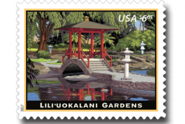 Почтовая служба США (USPS) выпустила памятную марку в честь 100-летия парка Лилиуокалани и одноимённых садов, расположенных на острове Хило, штат Гавайи. Номинал новой марки Lili‘uokalani Gardens - $6.65 (для отправки документов в больших картонных конвертах - Priority Mail Flat Rate Envelope).