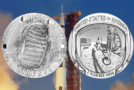 Монетный двор США (USMint) готовится к выпуску двух монет из серебра (номинал - $1) и золота ($5), которые увековечат космическую миссию Apollo11. В ходе этой миссии, продолжавшейся 8 дней, 3 часа, 18 минут и 35 секунд, космонавты Нил Армстронг и Базз Олдрин стали первыми людьми, прогулявшимися по поверхности Луны. 20 июля 2019 года Соединённые Штаты собираются отметить 50-летний юбилей этого великого события.