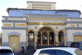 После церквей отправились в главную синагогу Киева – синагогу Бродского. Красивое отремонтированное светлое здание. Охраняется полицией внутри и снаружи. Нас встретили радушно пожилые женщины - еврейки, пригласили на молитву. Молодой хасид помог надеть тфилин. По залу бегали дети в кипах. Естественно, опускаем деньги в копилку.