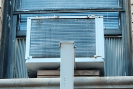 Вы описали три самые распространённые проблемы, связанные с AC. Во-первых, закон Local Law 11 требует, чтобы все кондиционеры в билдингах стояли на кронштейне (mounting support bracket). Пожалуйтесь лендлорду, и он вышлет вашему соседу соответствующее предупреждение (Notice). Если сосед его проигнорирует, его ждёт солидный штраф.
