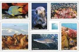 Почтовая служба США (USPS) выпустила серию красивейших марок в честь 50-летнего юбилея Национальной системы морских заповедников (National Marine Sanctuary System - NMSS). На 16 марках изображены кораллы, медузы, киты, выдры и многое другое. USPS отобрала лучшие фотографии из более чем 30 тысяч.