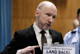 "Неонацист Андерс Брейвик, убивший 77 человек, пришел на заседание по условно-досрочному освобождению с двумя выбритыми Z на голове.