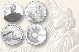 Монетный двор США (US Mint) начал приём заявок и обсуждение дизайна четырёх новых долларов в рамках долгоиграющей серии Американские инновации» (American Innovation dollars). Новые доллары 2026 года чеканки увековечат изобретения и инноваторов в штатах Калифорния, Айова, Миннесота и Висконсин.
