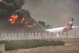 Фото: Аэропорт Саны в огне. Стоп-кадр видеоролика Youtube