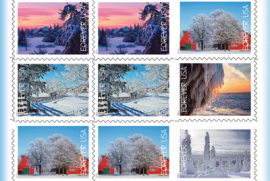 Почтовая служба США (USPS) выпустит новые марки с зимними пейзажами (Winter Landscapes Stamps). Буклет из 20 марок будет состоять из пяти оригинальных марок с фотографиями самых эффектных видов американской глубинки.