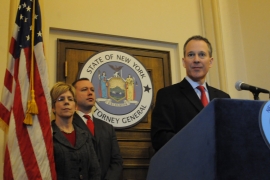 Генеральный прокурор штата Нью-Йорк Эрик Шнайдерман отчитался перед ньюйоркцами о работе, проделанной за первый год на ответственной должности. Основное внимание прокурор уделил проблемам налогоплательщиков, общественной безопасности, экономической справедливости, а также защите гражданских прав и охране окружающей среды.