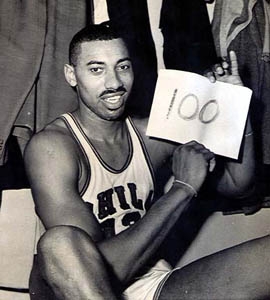 2 марта баскетбольная общественность всей планеты отмечала 50-летие вечного рекорда выдающегося центрового. Ровно пятьдесят лет назад лидер «Филадельфия уорриорс» Уилт Чемберлен набрал... 100 очков в одном/!/ матче. Это уникальное достижение феноменального 25-летнего баскетболиста состоялось во встрече с «Нью-Йорк никс», которая завершилась победой филадельфийцев со счетом 169:147.