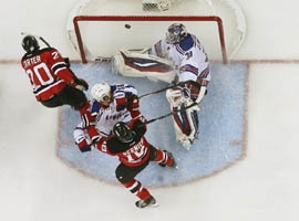 К этому времени ситуаци в финале Запада между«Нью-Йорк рейнджерс» и «Нью-Джерси дэвилс» очень обострилась. «Рейнджерс», ставшие лучшими на Востоке вперые за 18 лет (случилось это в сезоне-1993/94, когда команда в последний раз отметила свой триумф в розыгрыше Кубка Стэнли), выиграли две нечетные игры дома и в гостях (первую и третью), «Девилс» дважды сравняли счет (после второго и четвертого матчей). После пятой встречи, которая проходила на льду «Медисон-Сквер-Гарден», равенство нарушилось в пользу гостей. «Дэвилс» одержали очень важную победу со счетом 5:3. Как показали дальнейшие события, эта игра стала переломной в серии: «Рейнджерс« не смогли поправить ситуацию. К 10 минуте первого периода “Девилс” забросил три шайбы в ворота Хенрика Лунквиста. Отличились Стивен Джионта, Патрик Элиаш и Трэвис Зэйджак. “Рейнджерс”, усилиями Брендона Праста, Райана Кэллахэна и Мариана Габорика, сумели к началу третьей 20-минутки сравнять счет - 3:3. Однако за четыре с половиной минуты до конца третьего периода Райан Картер забросил четвертую шайбу в ворота “Рейнджерс”. За 30 секунд до финальной сирены Зак Паризе с передачи Ильи Ковальчука установил окончательный счет, отправив шайбу в пустые ворота. Победа позволила “Девилс” выйти вперед - 3-2.