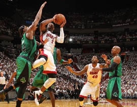 Отметим, что «Селтикс» вышли в финал Восточной конференции в третий раз за последние пять лет. Год назад на этом этапе бостонцы уступили «Хит». Нынешняя серия началась с победы флоридцев. Дома они переиграли соперников со счетом 93:79. После равной первой половины встречи перелом произошел в конце третьей благодаря великолепной игре Леброна Джеймса, набравшего 32 очка и выигравшего 13 подборов. Дуэйн Уэйд пополнил копилку команды 22 очками. Самым результативным игроком в составе «Селтикс» стал форвард Кевин Гарнетт, набравший 23 очка и сделавший десять подборов.