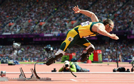 Олимпиада в Лондоне ознаменовалась многими громкими достижениями, и также запомнится появлением первого в истории Игр спортсмена-ампутанта, несмотря на многократные препятствия со стороны Международной федерации легкой атлетики (ИААФ). Оскар Писториус родился с серьезным физическим дефектом – у него отсутствовали обе берцевые кости, которые соединяли стопу и колени. В 11 месяцев ему ампутировали «мягкие» конечности, и в три года он научился ходить на протезах... Причем передвигался он с такой легкостью, что стал играть в различные игры со сверстниками. Родители делали все возможное для того, чтобы мальчик развивал свое тело. Оскар научился плавать, занимался борьбой, парусным спортом, но больше всего его увлек бег. Для него были изготовлены специальные протезы из металла и он успешно выступал на беговой дорожке. В 2007 году он полностью переквалифицировался в бегуна на короткие дистанции.