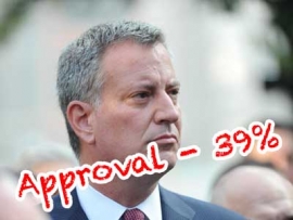 Только 39% нью-йоркских избирателей одобряют работу нового мэра Билла де Блазио, показал последний опрос общественного мнения, проведенный газетой Wall Street Journal, телеканалом NBC 4 New York и колледжем Marist.