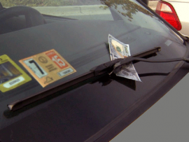Схема его достаточно проста. Мошенники оставляют под дворниками на лобовом стекле машины стодолларовую купюру. Обычно, водитель замечает ее, после того как сел в машину и завел мотор. Увидев деньги, он выходит из машины, чтобы забрать деньги, в этот момент в автомобиль заскакивает автоугонщик и угоняет машину.
