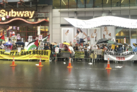 На манхэттенской площади Тайм-Сквер состоялся митинг протеста под названием NYC Solidarity with Palestine. Более сотни радикально настроенных протестантов требовали от израильского правительства изменить политику в отношении Палестинской автономии, которая, по их мнению, находится под тотальным контролем, санкциями и оккупацией.