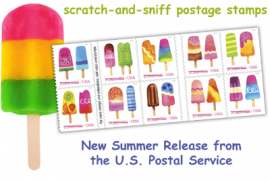 Почтовая служба США (USPS) впервые в своей истории выпустит марки с запахом. Необычный релиз под названием FrozenTreats состоится 20 июня. Марки будут посвящены молочному мороженному и сладкой замороженной воде (более подробно об изобретателе последнего десерта Фрэнке Эпперсоне мы рассказывали в статье "Фруктовый лёд на почтовый марках", "РБ" № 1145).