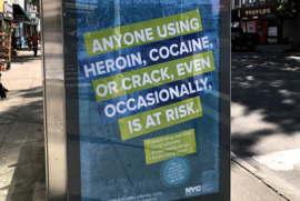 Департамент здравоохранения города Нью-Йорк и администрация мэра Билла ДеБлазио запустили антинаркотическую рекламную кампанию. На больших плакатах, размешённых на улицах пяти боро, выделяется надпись "Каждый, кто даже изредка употребляет героин, кокаин или крэк, находится в группе риска".
