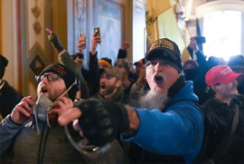 "Не знающая границ толпа в мраморных залах Капитолия. Размахивание огнестрельным оружием в оккупированном зале заседаний. Забаррикадировавшиеся сенаторы и депутаты, сидящие в защитных масках под столами. Кадры из Вашингтона шокируют. Но они не удивляют", - отмечает журналист Марк Питцке.