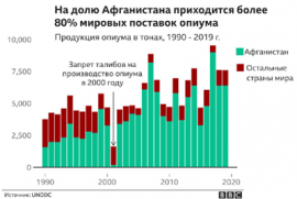По данным Управления по наркотикам и преступности ООН, Афганистан - крупнейший производитель героина и опиатов в мире, на его долю приходится 80% всех поставок.