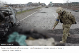 Весь мир обошли кадры, снятые на шоссе под Киевом: мужчину с поднятыми руками расстреливают российские военные. Эта видеозапись была сделана в начале марта. С тех пор украинская армия перешла в контратаку и вернула контроль над этим участком шоссе, но последствия присутствия там россиян ужасают. Корреспондент Би-би-си Джереми Боуэн увидел всё своими глазами.